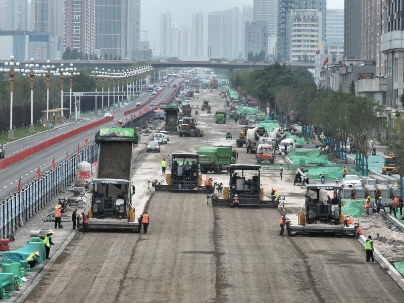 太原市政集團(tuán)堅(jiān)持“精準(zhǔn)、精細(xì)、精致”施工理念,始終以“零容忍”態(tài)度對(duì)待質(zhì)量細(xì)節(jié),以“全過程”思維把控施工環(huán)節(jié),緊盯鋼板樁支護(hù)、溝槽回填、水穩(wěn)瀝青攤鋪、花崗巖鋪裝等關(guān)鍵環(huán)節(jié),全力打造既擁有堅(jiān)固挺拔內(nèi)在骨架,更展現(xiàn)靚麗宜居嶄新面貌的城市主干道。全周期筑牢地下“安全防線”,嚴(yán)格控制鋼板樁施打全過程,按照“先支后拆、分段拔除”原則有序進(jìn)行,最大限度減少土體擾動(dòng),實(shí)現(xiàn)安全施工與環(huán)境保護(hù)和諧統(tǒng)一;全流程精控管網(wǎng)“堅(jiān)固壁壘”,重點(diǎn)控制基底處理質(zhì)量,對(duì)軟弱地基進(jìn)行換填加固,采用分層回填工藝,及時(shí)進(jìn)行壓實(shí)度檢測,真正做到“一層一驗(yàn)、壓實(shí)到位”;全方位筑牢道路“內(nèi)在骨架”,采用機(jī)械化作業(yè)模式,嚴(yán)格執(zhí)行“先輕后重、先邊后中、先慢后快”規(guī)范流程, 全程緊盯拌合、運(yùn)輸、溫度等關(guān)鍵環(huán)節(jié),精準(zhǔn)控制標(biāo)高與平面位置,保障各工序銜接無縫順暢;全環(huán)節(jié)細(xì)究扮靚“民生畫卷”,嚴(yán)格執(zhí)行材料遴選標(biāo)準(zhǔn),采用“試鋪—校正—精鋪”工藝流程,確保接縫寬度保持均勻一致,達(dá)到平整美觀、堅(jiān)固耐用的質(zhì)量要求。