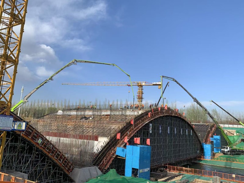 該橋采用單跨72米連續(xù)5跨設(shè)計(jì),主腹拱作為橋梁的核心承重結(jié)構(gòu),是此次橋梁施工的核心節(jié)點(diǎn),項(xiàng)目團(tuán)隊(duì)順利克服弧形施工、模板一次成型、大體量澆筑、五跨精準(zhǔn)落架等挑戰(zhàn),以“毫米級”精度貫穿施工全過程,為橋梁成型打造堅(jiān)實(shí)“筋骨”。