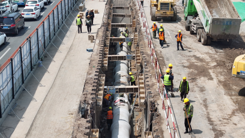 太原市政集團堅決扛牢使命擔當,強化統(tǒng)籌、多方聯(lián)動,想盡一切辦法,克服一切困難,全面對標看齊“迎澤標準”,堅持以全局觀念和系統(tǒng)思維謀劃推進項目建設,采用半幅封閉施工、平行流水作業(yè)方式,克服工程體量大、施工內(nèi)容繁重、建設工期緊張等困難與挑戰(zhàn),一體推進道路、管線、照明、沿線景觀等建設任務。項目伊始,規(guī)劃“導航圖”,研討節(jié)點安排、工序銜接、資源配置等關鍵環(huán)節(jié),制定十余套專項施工方案,優(yōu)化組織設計,形成管理閉環(huán);繪制“進度表”,建立分級負責、動態(tài)調(diào)整的進度管控體系,提升9個工區(qū)自主管理效能,錨定工期目標,加快施工效率。施工過程中,掃清“攔路虎”,采用鋼板樁支護、分層開挖、放坡開挖工藝,克服地下管線復雜、開挖深度大、地下水高等難點,確保管網(wǎng)升級與地鐵運營和諧并行;保持“攻堅態(tài)勢”,針對重難點部位,提前制定專項方案,全部進行技術交底,著重加強安全、質(zhì)量管控,形成高效施工態(tài)勢。注重以人為本,提升“施工溫度”,細化各項便民、利民措施,最大限度降低對市民日常生活的影響,保障通行需求;擦亮“市政名片”,開展道路清理志愿服務活動,用實際行動為城市“美容”,展現(xiàn)國企擔當。