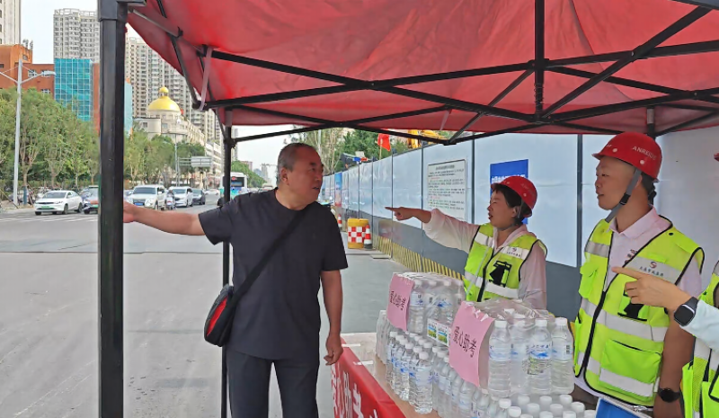 施工過程中,太原市政集團(tuán)作為主要施工單位,積極統(tǒng)籌協(xié)調(diào),主動(dòng)與園林、電力、自來水、熱力等平行施工單位溝通,在全力推進(jìn)工程進(jìn)度的同時(shí),為各參建單位留好施工作業(yè)面,合理安排平行、交叉作業(yè),確保工程順利推進(jìn),跑出施工“加速度”。為妥善平衡民生保障與工程建設(shè)雙重需求,太原市政集團(tuán)主動(dòng)擔(dān)當(dāng)、積極作為,主動(dòng)聯(lián)動(dòng)交通、城管等部門,采取多項(xiàng)舉措,避免影響周邊居民的正常生活。在施工中遵循“修路不添堵”原則,精心制定交通組織方案,設(shè)置應(yīng)急通道、便民通道和低噪音設(shè)備,并安排交通協(xié)管員在地鐵口等關(guān)鍵部位現(xiàn)場指揮、引導(dǎo)行人,為市民出行提供便利條件,將“讓市民少繞一米路,少踩一個(gè)水坑”融入深夜巡查便道安全的腳步,化作施工與民生和諧共生的溫暖注腳;實(shí)施“半幅施工+分段施工+動(dòng)態(tài)導(dǎo)改”策略,與交警部門合作,優(yōu)化交通信號燈配時(shí),有效緩解施工對市民出行的影響;中高考期間,積極開展“為夢護(hù)航 愛心助考”志愿服務(wù)活動(dòng),全線工地按下“靜音鍵”,在關(guān)鍵路口設(shè)立助考點(diǎn),配備礦泉水、防暑降溫藥品等,并為考生開放綠色通道,以實(shí)際行動(dòng)助力中高考;在施工現(xiàn)場設(shè)置安全警示標(biāo)志和施工公告牌,及時(shí)告知市民施工進(jìn)展和注意事項(xiàng),增強(qiáng)市民對施工的理解和支持;組織施工人員進(jìn)行城市家具的及時(shí)進(jìn)場和質(zhì)量檢驗(yàn)工作,在全線開展城市家具安裝作業(yè),將一批兼具現(xiàn)代風(fēng)格與太原特色的公交站臺(tái)、休閑座椅、分類垃圾箱等設(shè)施安裝到位,這些融合功能與美學(xué)的城市家具,已成為迎澤大街沿線的新亮點(diǎn),不僅提升了城市空間的品質(zhì),更展現(xiàn)出太原深厚的人文關(guān)懷與現(xiàn)代城市風(fēng)貌。全體施工人員以高度的責(zé)任感和使命感,將品質(zhì)與關(guān)懷融入到每一個(gè)細(xì)節(jié)中,用實(shí)際行動(dòng)詮釋了“以人為本,和諧共建”的施工理念。